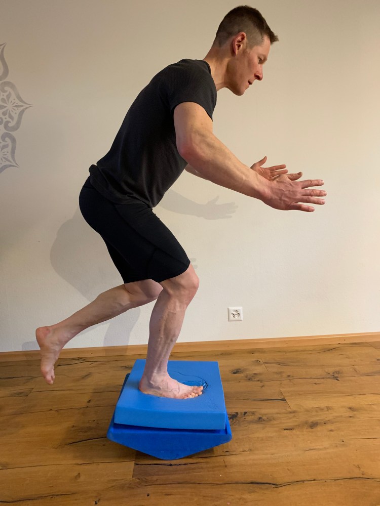 Gestartet werden kann mit einbeinigen Balanceübungen auf Kippelbrett oder Balance Pad.